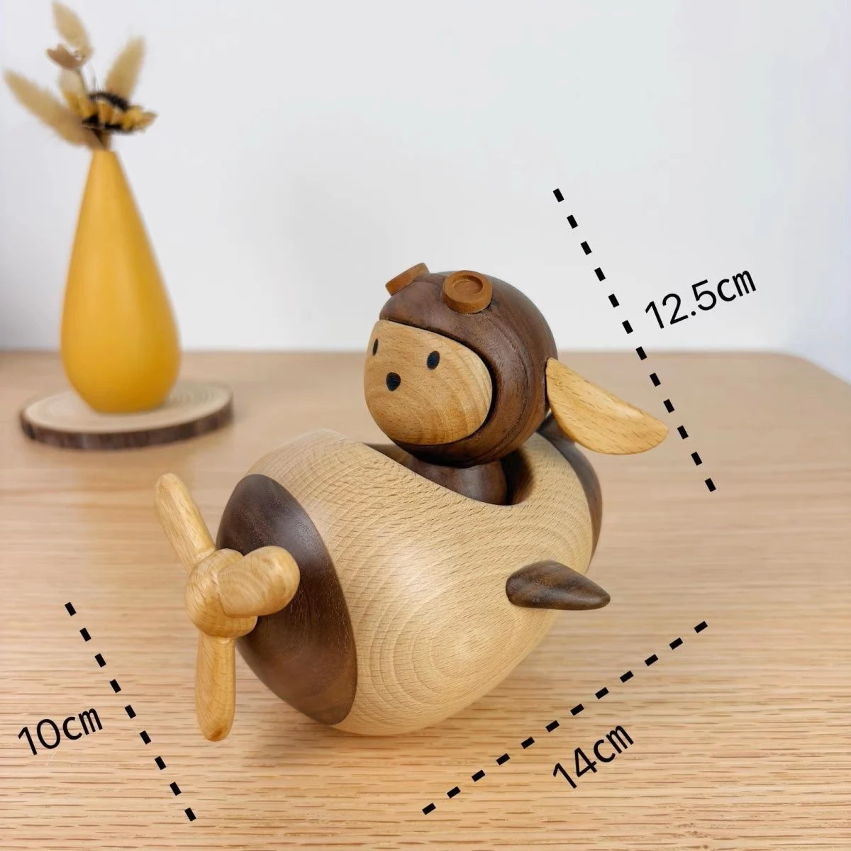 Discover the enchanting Wooden Pilot Flying Airplane Ornament, a beautifully handcrafted piece that brings a blend of nostalgia and nature into your home. Expertly made from sustainable beech and walnut wood, this ornament measures 10cm in width, 14cm in length, and 12.5cm in height, with a net weight of 0.41kg, ensuring it’s both sturdy and easy to handle.